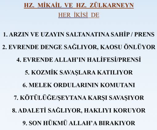 SONUÇ; Evet, BAŞ MELEK MİKAİL, Zülkarneyn'in ta kendisidir. İşte bu sebepledir ki Yüce Allah’ın ona vermiş olduğu kudret ve hikmet ile ona olan güveni gelmiş geçmiş bütün peygamberlerin de üstündedir.